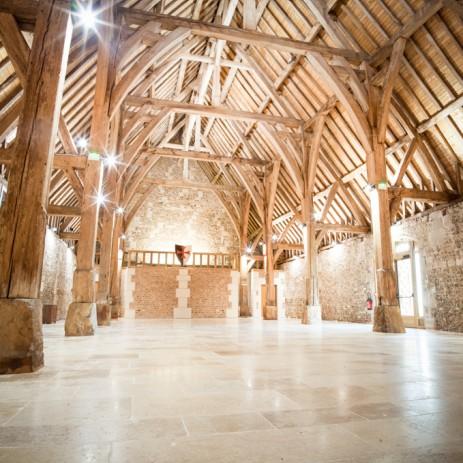 La grange, récemment restaurée, dispose d'une surface de 350 m² et peut accueillir jusqu'à 290 personnes en cocktail et 250 assises. Idéale pour des mariages, banquets, séminaires ou expositions, elle se distingue par sa charpente exceptionnelle et son aménagement polyvalent.