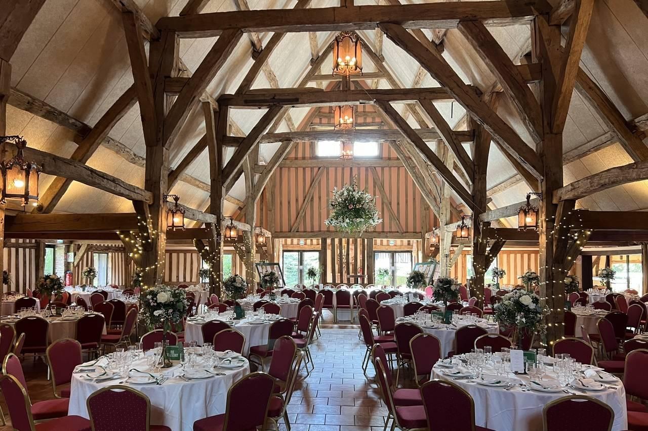Domaine Normand avec deux granges de 200m2 et 600m2 permettant de recevoir de 80 à 600 convives. En hiver, cette grande capacité permet d'organiser votre cérémonie laïque, votre cocktail et votre dîner dansant, en intérieur de salle, sans avoir à déplacer ou retirer le mobilier jusqu'à 450 convives.